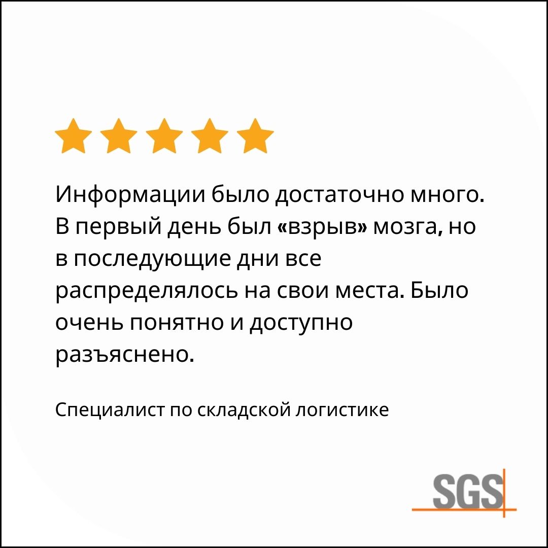 Участие в семинаре будет подтверждено именным сертификатом SGS для каждого слушателя.Формат и длительность курса