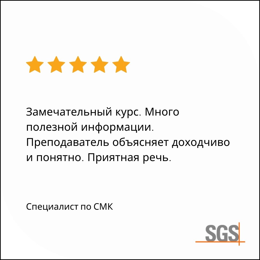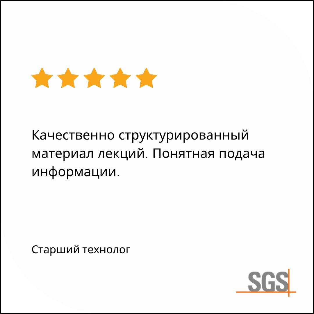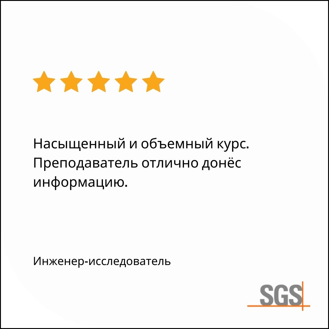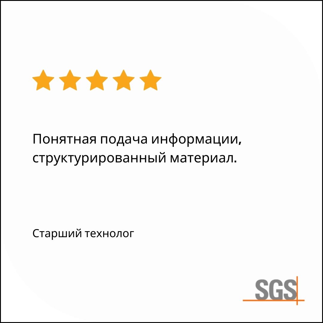 Участие в семинаре будет подтверждено именным сертификатом SGS для каждого слушателя.Формат и длительность курса